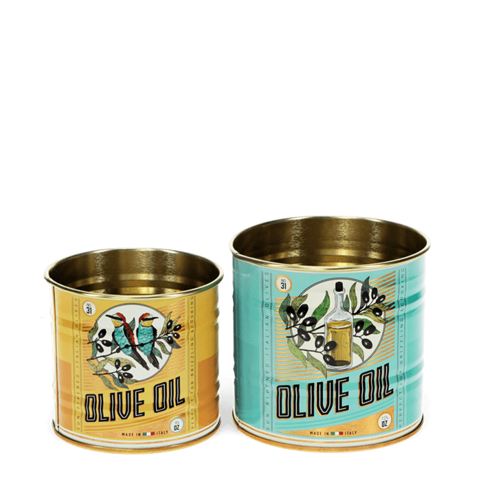 Die perfekte originelle Aufbewahrungsmöglichkeit für all die kleinen Dinge des Lebens! Inspiriert von Vintage-Lebensmittelverpackungen eignen sich diese Mini-Aufbewahrungsdosen in Olivenöl-Optik ideal zum Ordnen von Schlüsseln, Münzen, Schreibwaren und all den anderen Kleinigkeiten.