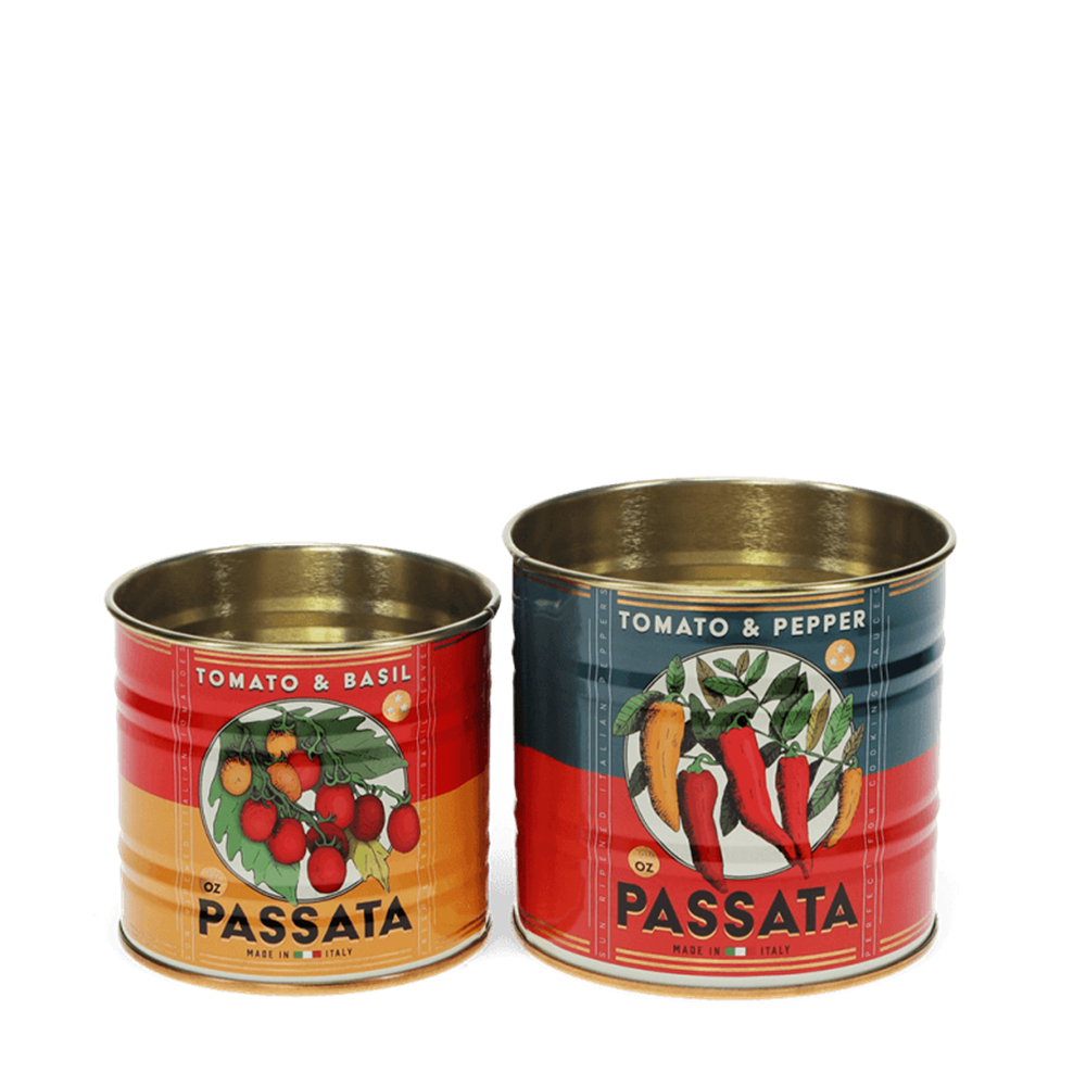 Die perfekte Aufbewahrungsmöglichkeit für all die kleinen Dinge des Lebens! Inspiriert von Vintage-Lebensmittelverpackungen eignen sich diese Passata Mini-Aufbewahrungsdosen ideal zum Ordnen von Schlüsseln, Münzen, Schreibwaren und all den anderen Kleinigkeiten.