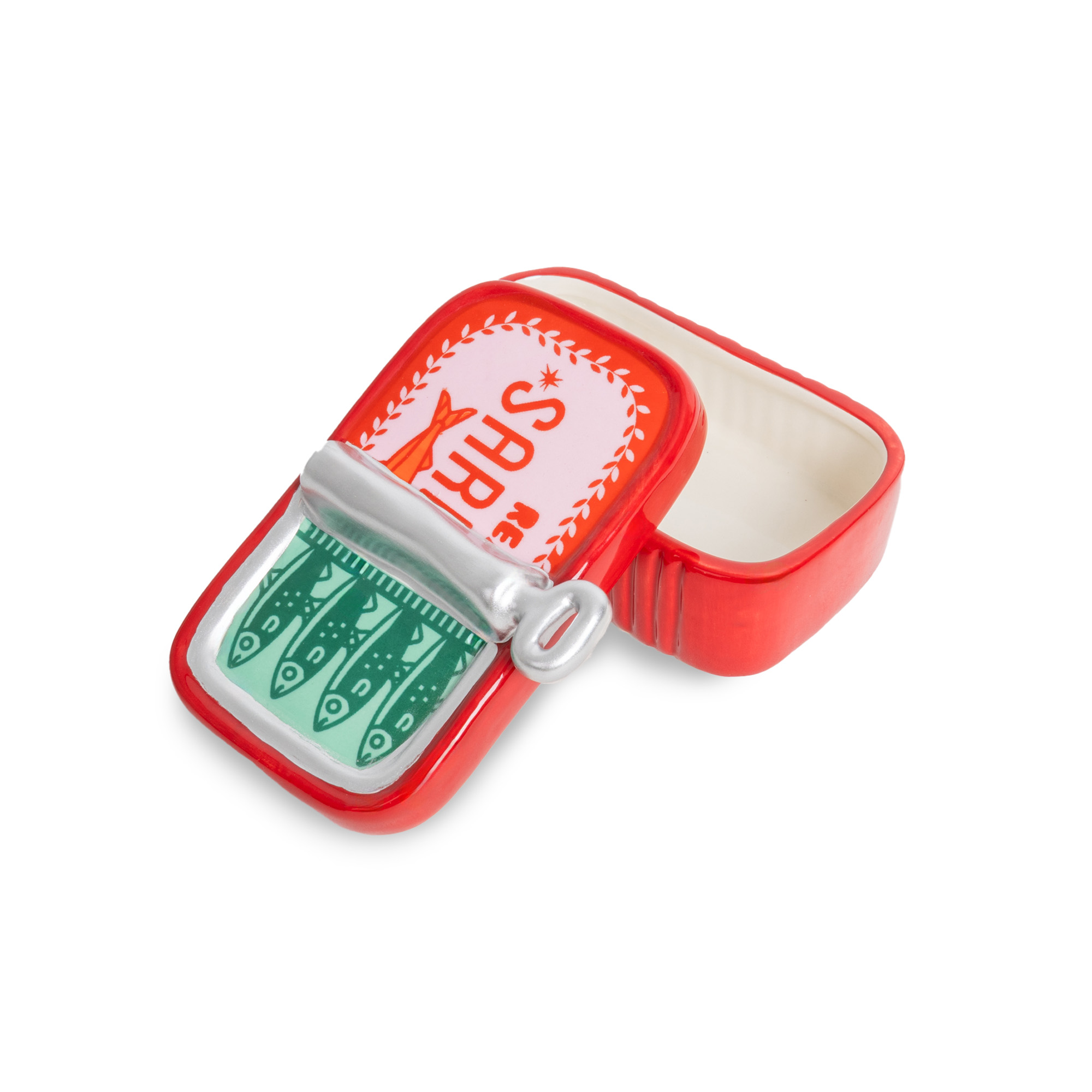 Schmuckkästchen in Form einer Sardinenbüchse, das überrascht und auffällt. Kombiniert die Funktionalität einer Schmuckaufbewahrung mit einem auffälligen Design, das gleichzeitig als Dekoration dient. Ideal für Personen, die nach außergewöhnlichen Produkten suchen.