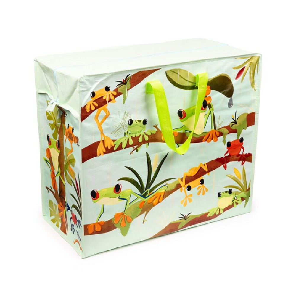 Damit schaffen Sie Platz: Jumbo-Tasche in originelem Tropical-Frogs - Frosch-Design. Ideal für die Aufbewahrung von Bettwäsche, Kleidung, Wäsche, Spielzeug oder für den Kofferraum im Auto. Mit Reißverschluss und Polypropylen-Gurtband Griffe. Ordnung im Haushalt - leicht gemacht, alles gut verstaut und muss sich nicht verstecken.