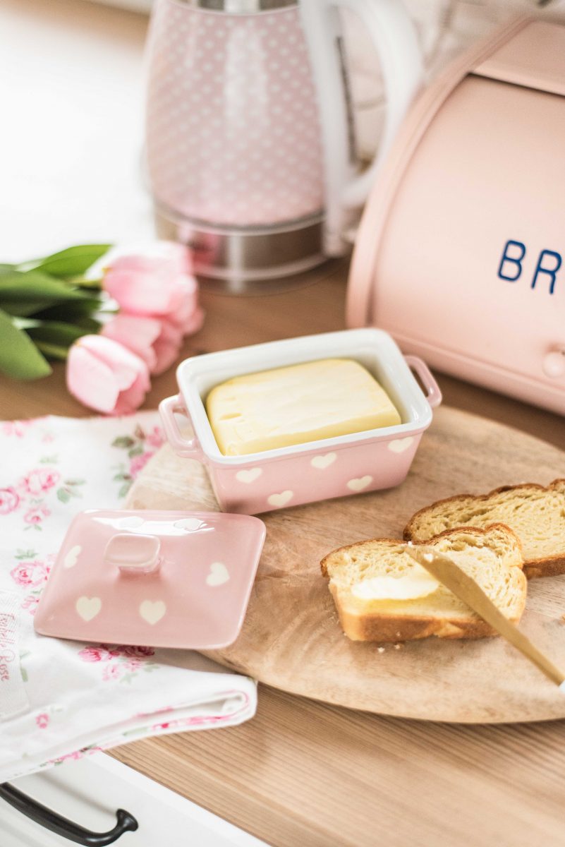 Diese moderne Butterdose mit Griffen und Deckel von Isabelle Rose ist aus hochwertigem Steingutkeramik gefertigt und verfügt über ein stilvolles Herz-Design. Sie bietet ausreichend Platz für eine Standard-Butterpackung und passt perfekt auf jeden gedeckten Tisch. Mit Deckel, der die Butter frisch und geschützt hält. Die Dose dient bei Bedarf auch als Backform für den kleinen Kuchen, die Dose ist geeignet für den Ofen - natürlich auch für den Kühlschrank geeignet. Auch eine Mikrowelle oder Spülmaschine sind für diese Butterdose kein Problem. Eine praktische und stilvolle Ergänzung für jede Küche und ein tolles Geschenk für Freunde und Familie.