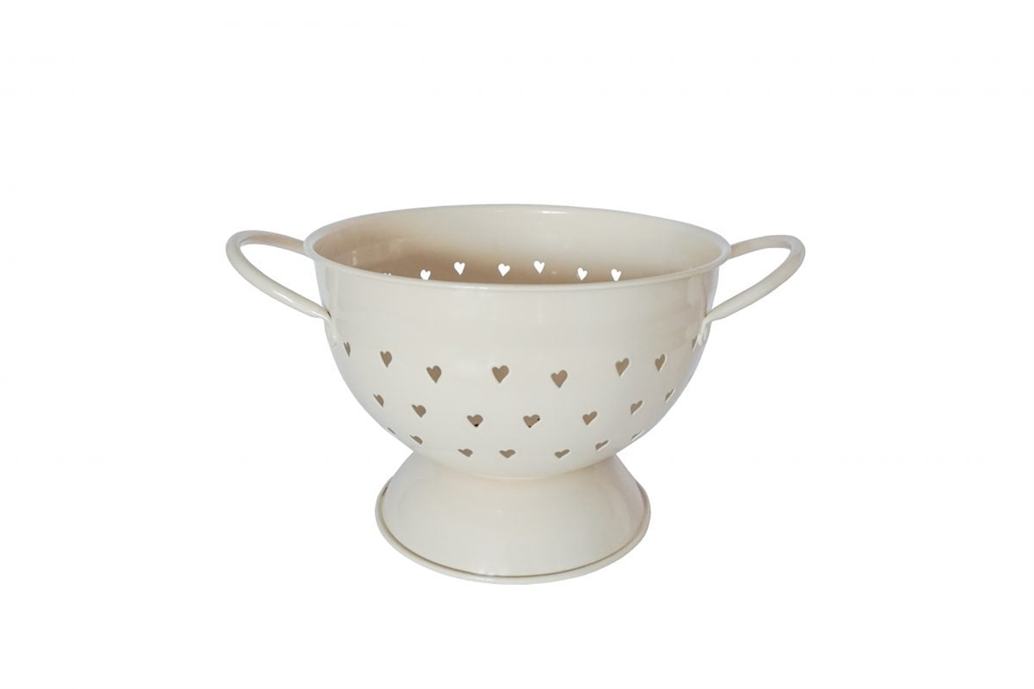 Retro-Sieb mit niedlichen Herzen zum einfachen Abtropfen. Dieses Sieb kann auch als Brotkorb oder Korb für Obst oder Gemüse verwendet werden.
