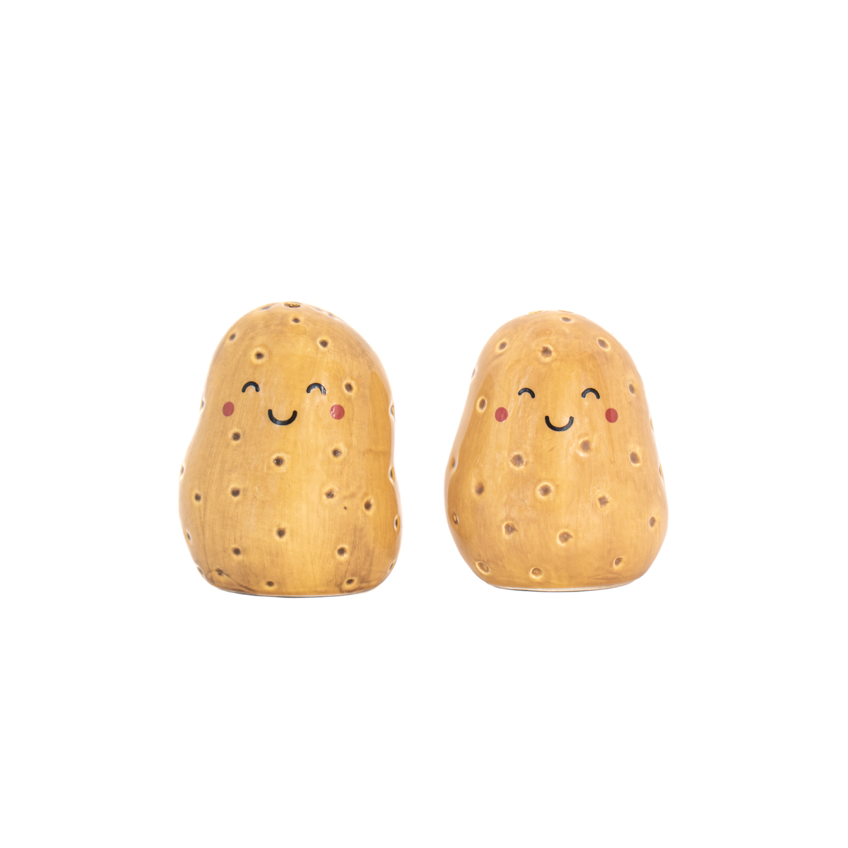 Bringen Sie mit diesen Kartoffel-Salz- und Pfefferstreuern einen Hauch von Humor in Ihre Küche. Perfekt für Liebhaber von Dekorationen, die von Lebensmitteln inspiriert sind.