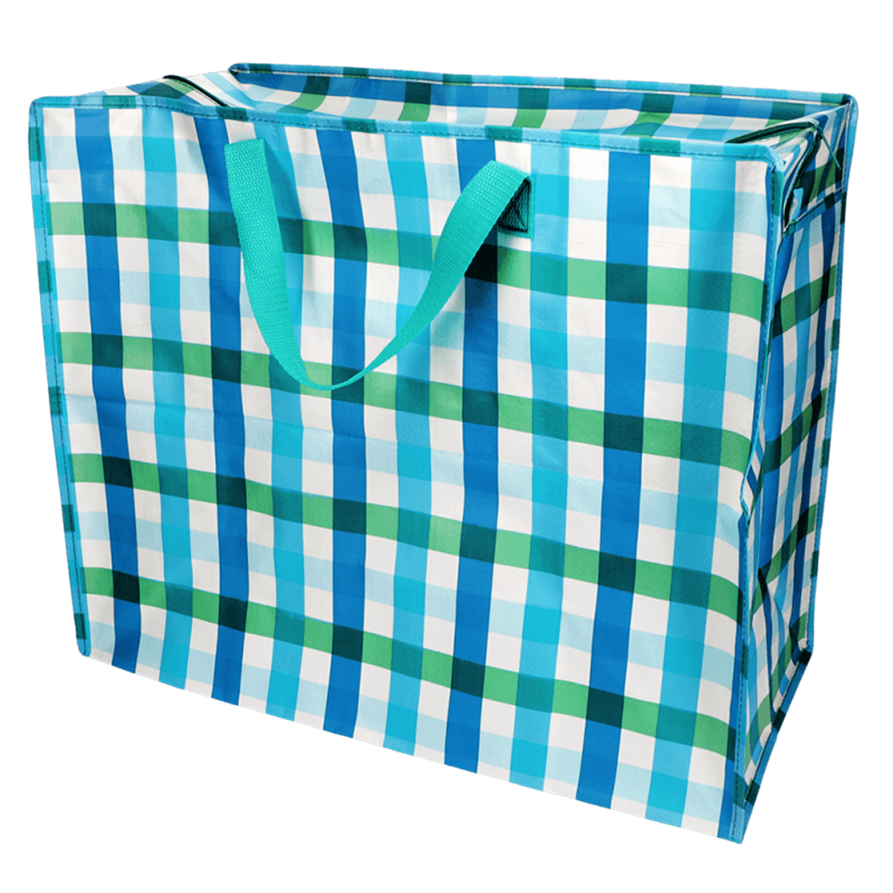 Diese Aufbewahrungstasche mit roten Karos ist ein stilvoller und praktischer Allrounder, der sich perfekt dafür eignet, Ihr Zuhause ordentlich zu halten. Sie besteht aus recyceltem Kunststoff und bietet Platz für alles, von Bettwäsche und Kleidung bis hin zu Spielzeug und Wäsche. Egal, ob Sie umziehen, Ihre Kinder zur Universität schicken oder einfach nur eine clevere Aufbewahrungslösung benötigen – diese Tasche ist genau das Richtige für Sie! Mit Reißverschluss und zwei starken, gewebten Nylongriffen in Türkis Lässt sich bei Nichtgebrauch flach zusammenfalten und leicht verstauen Hergestellt aus bis zu 90 % recyceltem Kunststoff.