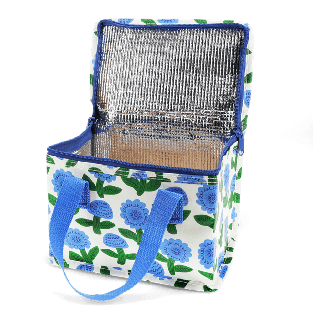 Diese wunderschöne Lunch-Tasche mit Motiv blühender Blumen ist mit einer Isolierfolie ausgekleidet, die Snacks und Getränke stundenlang kühl und frisch hält. Ideal für Schulbrote, Picknicks oder Ausflüge aller Art.