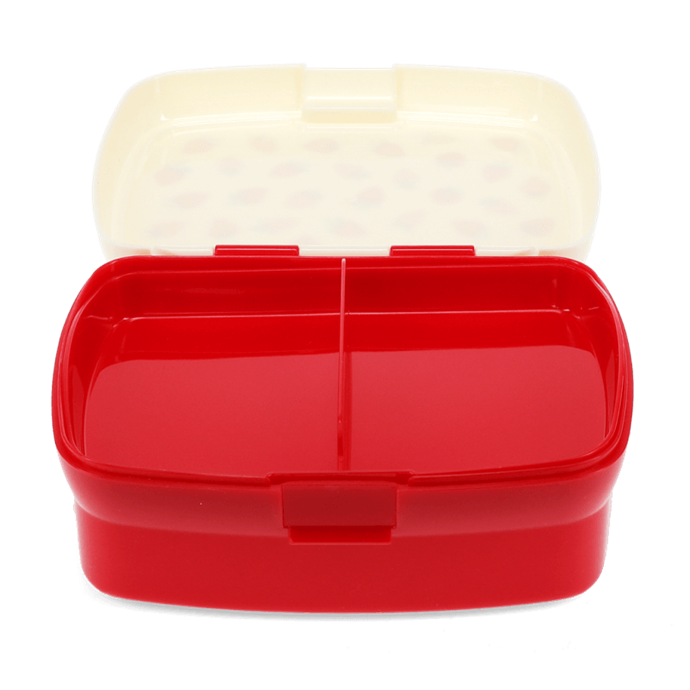 Verschönern Sie die Mahlzeiten mit dieser „Erdbeere-Motiv“-Brotdose. Mit ihrem herausnehmbaren Einsatz und dem Klappdeckel ist sie ideal, um Lebensmittel frisch und ordentlich getrennt aufzubewahren. Perfekt für die Schule, die Arbeit oder Picknicks. Das Hauptfach ist ca. 3 cm tief, einschließlich eines herausnehmbaren Einsatzes, der ca. 1 cm tief ist und in zwei Bereiche unterteilt ist. Der Deckel verfügt über einen benutzerfreundlichen Verschluss, der den Inhalt sicher verschließt.