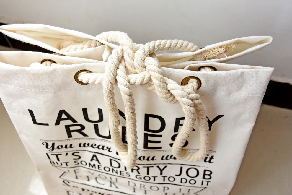 Tolle Aufbewahrungstasche mit Spruch für mehr Ordnung im Haushalt. Mit Trageseilen für einen leichten Transport. Ideal für Schmutzwäsche, Spielzeug oder Recyclingprodukte...da sollten im Zimmer herumliegende Klamotten der Vergangenheit angehören. Die Wäschebox ist groß und doch selbst platzsparend zu verstauen.